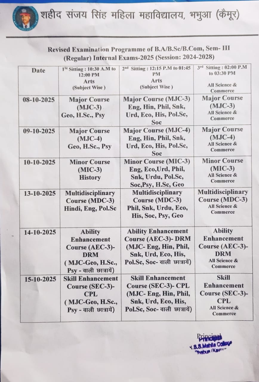 Revised Internal Exam Sem-III (2024-28) Programme... Important Notice For Internal Exam... Important Notice U.G-Sem-I , III & V... Exam From U.G Sem-III(2024-28), Sem-V (2023-27) Notice... U.G-Sem-V (2023-27) Internship Notice... U.G Sem-5th Admission Notice... UG Part I or II Special Exam Notice... Practical_Exam_Sem-04_(2023-27) Extended Notice... Practical_Exam_Sem-04_(2023-27)TimeTable... UG Sem-III (2024-28) Admission Date Extended Notice...